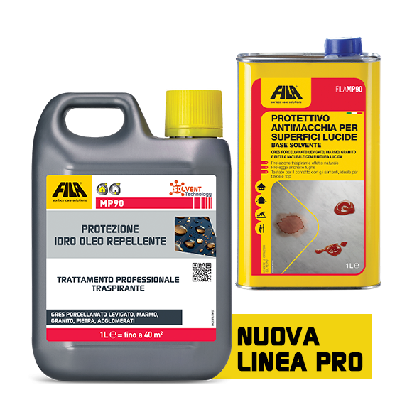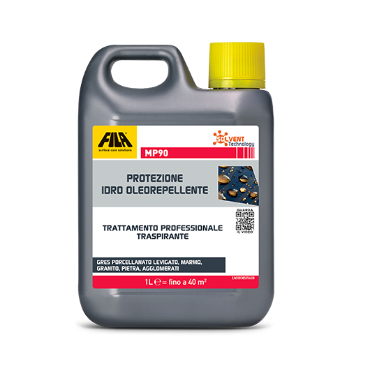 FILA MP/90 è un protettivo antimacchia trasparente per pietra naturale, marmo, granito, agglomerati, gres porcellanato levigato.