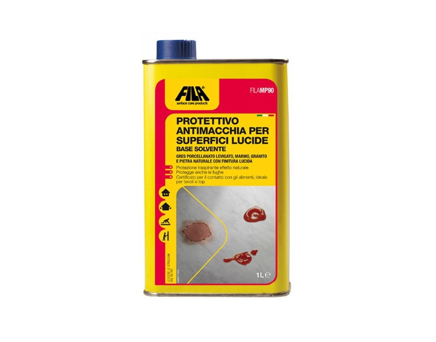 FILA MP/90 è un protettivo antimacchia trasparente per pietra naturale, marmo, granito, agglomerati, gres porcellanato levigato.