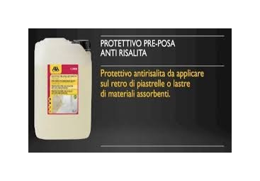 Protettivo pre-posa contro la risalita di sali e altri agenti inquinanti per il retro di pietre naturali, granito, maro, agglomerati, cotto e materiali assorbenti. disponibile in taniche da 5L