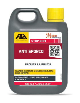 Filastop Dirt è un prodotto innovativo specifico per la pulizia e la sanificazione dei gres strutturati, naturali o lappati lucido. Aiuta la superficie nella resistenza allo sporco, conservandone l'aspetto originale nel tempo senza modificare il grado di viscosità del materiale.