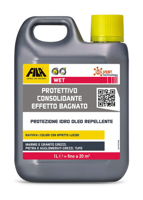 FILAWET è un protettivo a effetto bagnato per pavimenti in pietra naturale, marmo, granito, pietre locali, travertino, a finitura grezza.