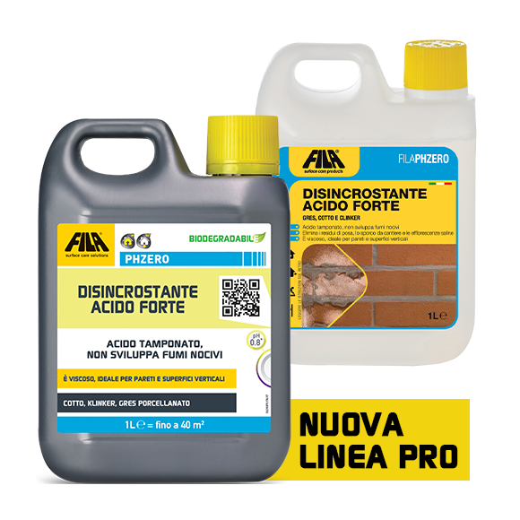 FILA PHZERO è un disincrostante acido concentrato per cotto, gres porcellanato, clinker.