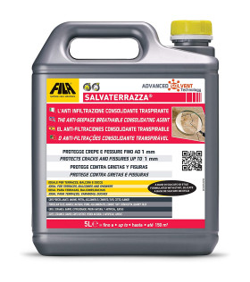 Il Salvaterrazza Fila è un prodotto contro crepe, infiltrazioni, muffe ed efflorescenze. La sua formula penetra nelle fessure e lesioni superficiali (da 0,5 µm a 1 mm) e agisce come idrorepellente e consolidante sui materiali in cotto, clinker, gres, cemento, pietra naturale, agglomerati e in generale sulle superfici assorbenti.