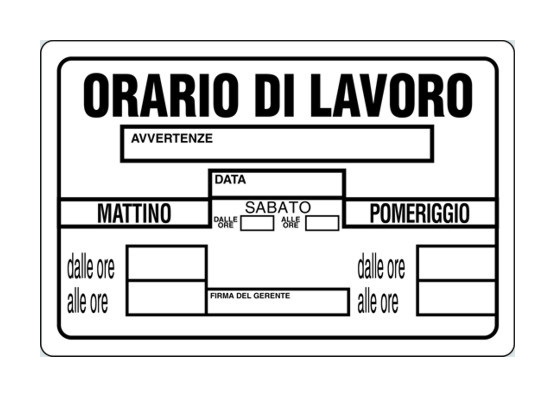 Non perdere l'opportunità di migliorare il tuo impianto con la Cartelli plastica orario lavoro cm 20x30. Ordina subito e scopri la differenza!