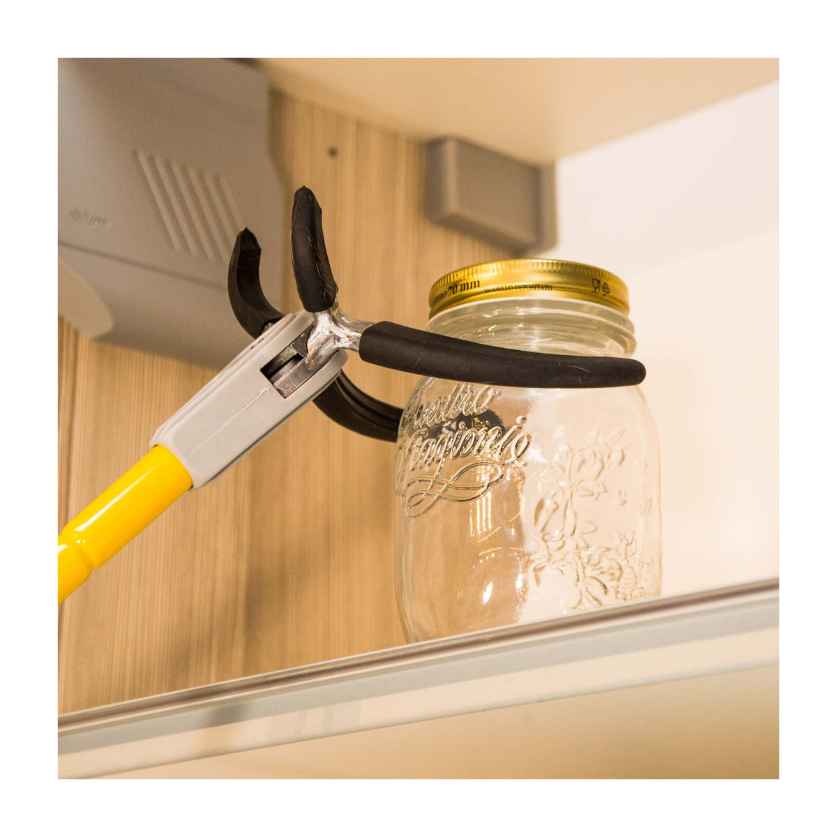 La doppia chela gommata permette la presa sicura di oggetti di diverse dimensioni anche dai ripiani più alti.