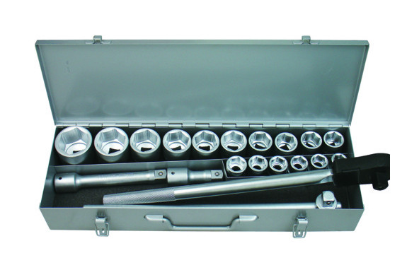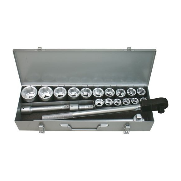 Set composto da 16 bussole esagonali da 19-50 mm. e 4 accessori ? In acciaio cromo vanadio ? Cf. in valigetta metallo