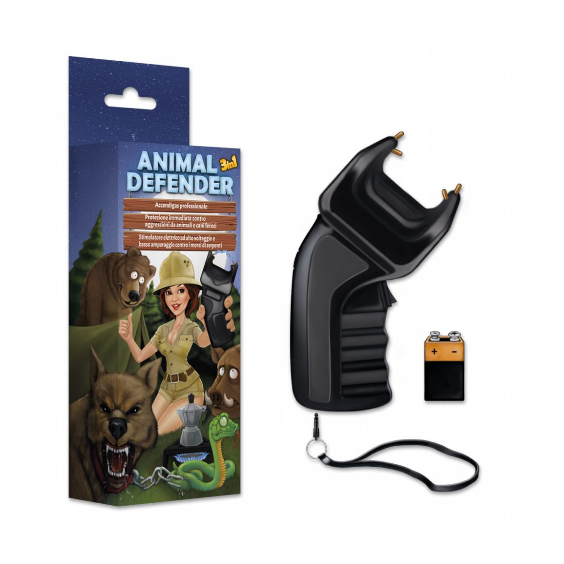 Ideato per la difesa personale in caso di aggressione da parte di animali, emette una scarica elettrica ad alta tensione (180.000 V), efficace come deterrente.