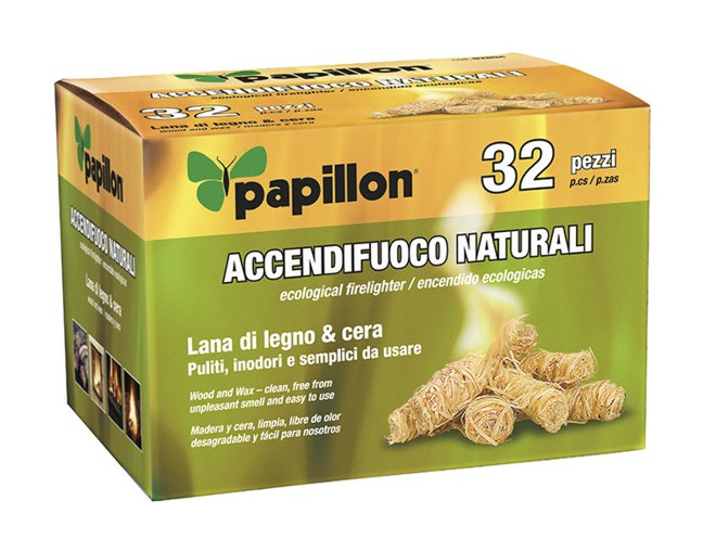 Vantaggi della accendifuoco ecologico papillon pagl. + cera pz32: