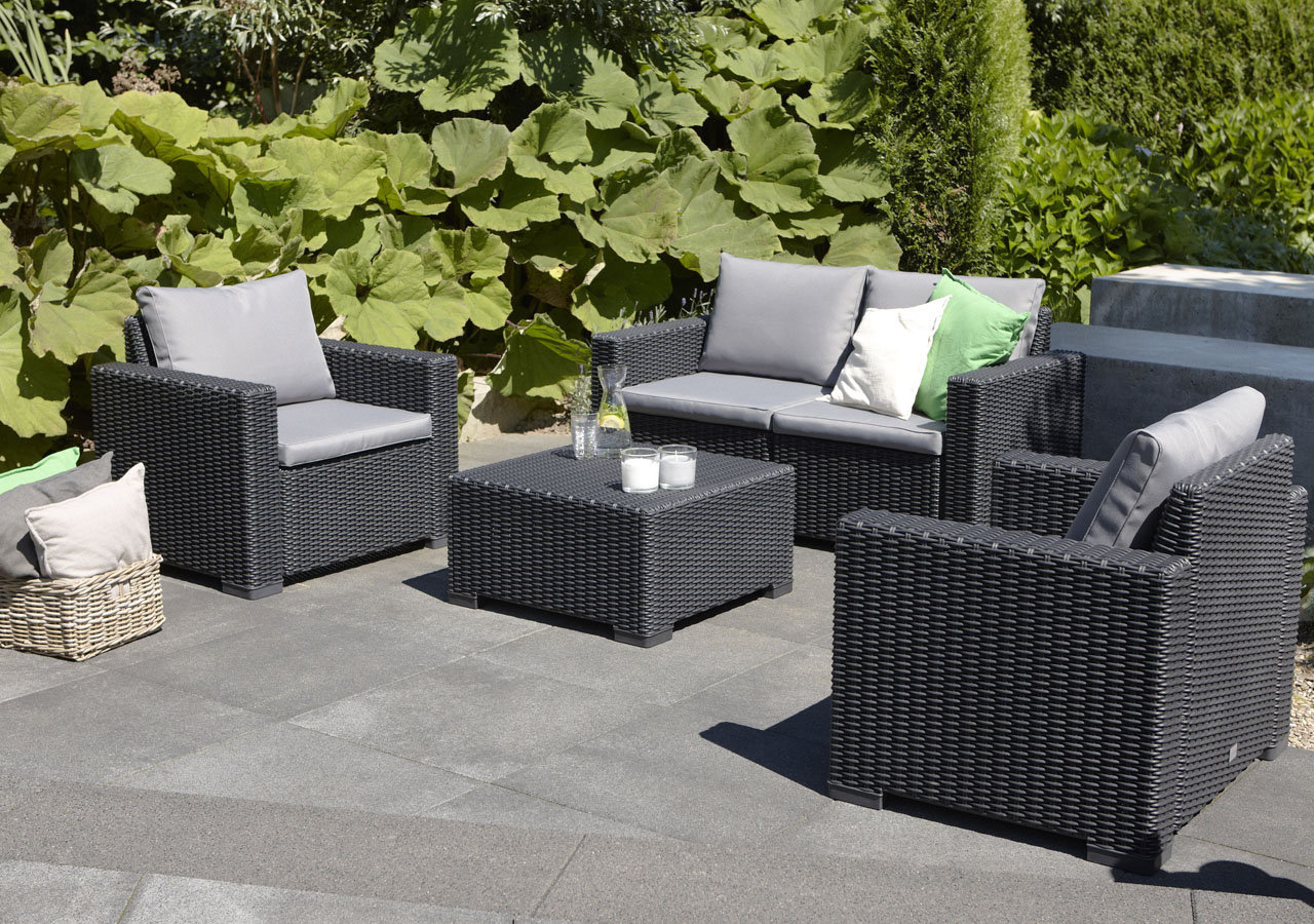 Oziare in giardino non è mai stato meglio che con il set salone californiano. Le sedie a sdraio generosi e divano a due posti sono dotati di 9 cm di profondità cuscini per un comfort ottimale. Il tavolo quadrato completa il set e il vimini tondo assicura che l'insieme ha un aspetto esclusivo, senza essere eccessivamente costoso. Questo insieme può essere rapidamente e facilmente assemblata senza strumenti aggiuntivi. Progettato con il vostro divertimento all'aperto continuato a mente.