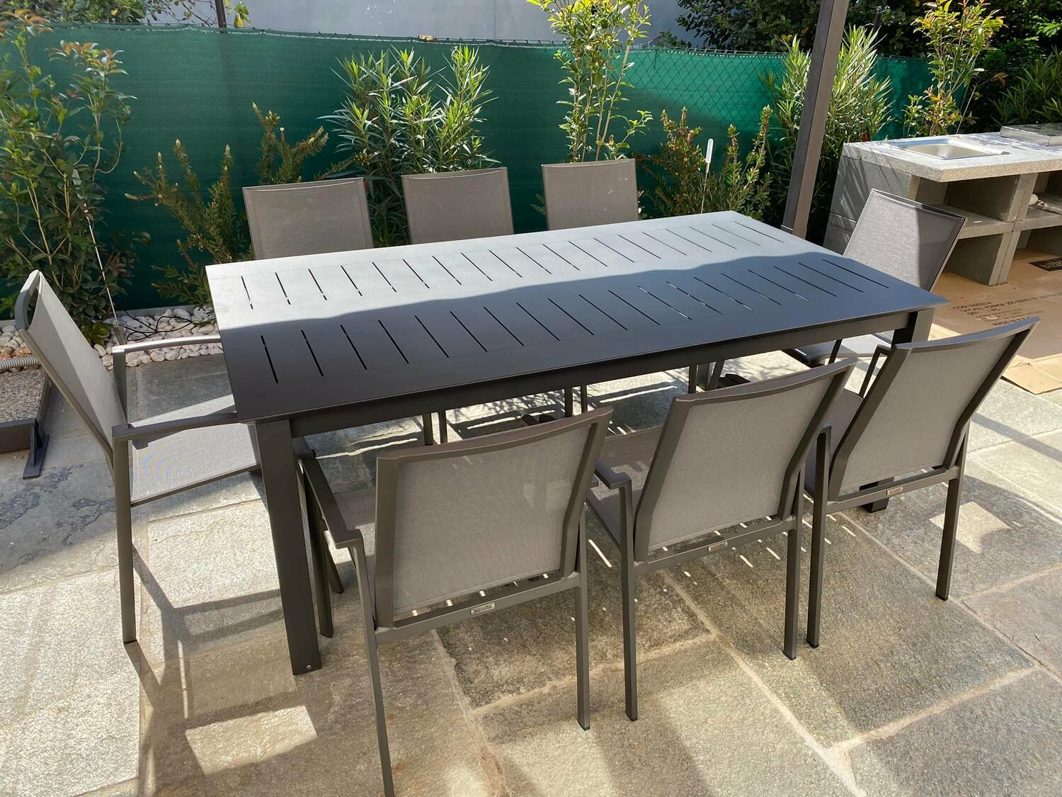 La struttura è in alluminio, materiale eccezionale per l'arredo esterno, il tavolo si presenta leggero è molto resistente agli agenti atmosferici ed ai raggi UV.