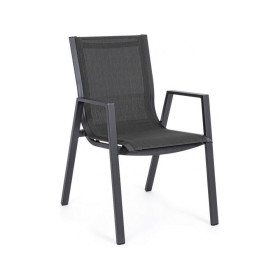La Sedia con braccioli Pelagius antracite di Bizzotto è una sedia con braccioli da giardino con struttura in alluminio verniciato a polvere (poliestere). Seduta e schienale in textilene 2x1. Impilabile.