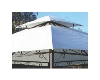 Gazebo dalla struttura in ferro, con gradevoli motivi alla base dei montanti che impreziosiscono la struttura.