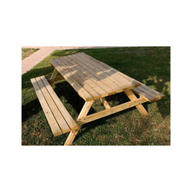 Realizzato interamente in legno di conifera con robusti e solidi listoni, il set è composto da un tavolo con due panchine incorporate ed è progettato per resistere all?azione degli agenti esterni a lungo termine. L?impregnazione in autoclave garantisce l?elevata resistenza del legno contro muffe, funghi, marcescenze e umidità, rendendolo pronto per l?uso esterno senza bisogno di ulteriore manutenzione. Semplice da assemblare, anche grazie alle istruzioni di montaggio, con le sue linee semplici e tradizionali il tavolo da pic nic con panche si adatta perfettamente a qualsiasi tipo di spazio aperto.