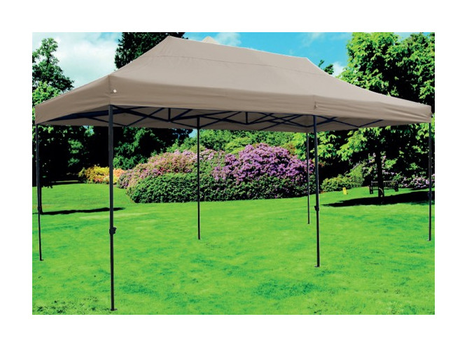 • Struttura acciaio verniciato colore grigio antracite, con copertura in tessuto poliestere e PVC impermeabile 250g/m2 colore beige. Sezione struttura 30?30/25?25/12?23 mm, completo di sacca morbida per trasporto con rotelle.