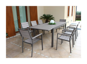 Fabio.pro ti propone questo tavolo da esterno con piano in polywood: il polywood è un materiale dall?aspetto simile al legno e composto da 90% polistirene e 10% gomma sbs. La struttura è in alluminio con finitura TAUPE .