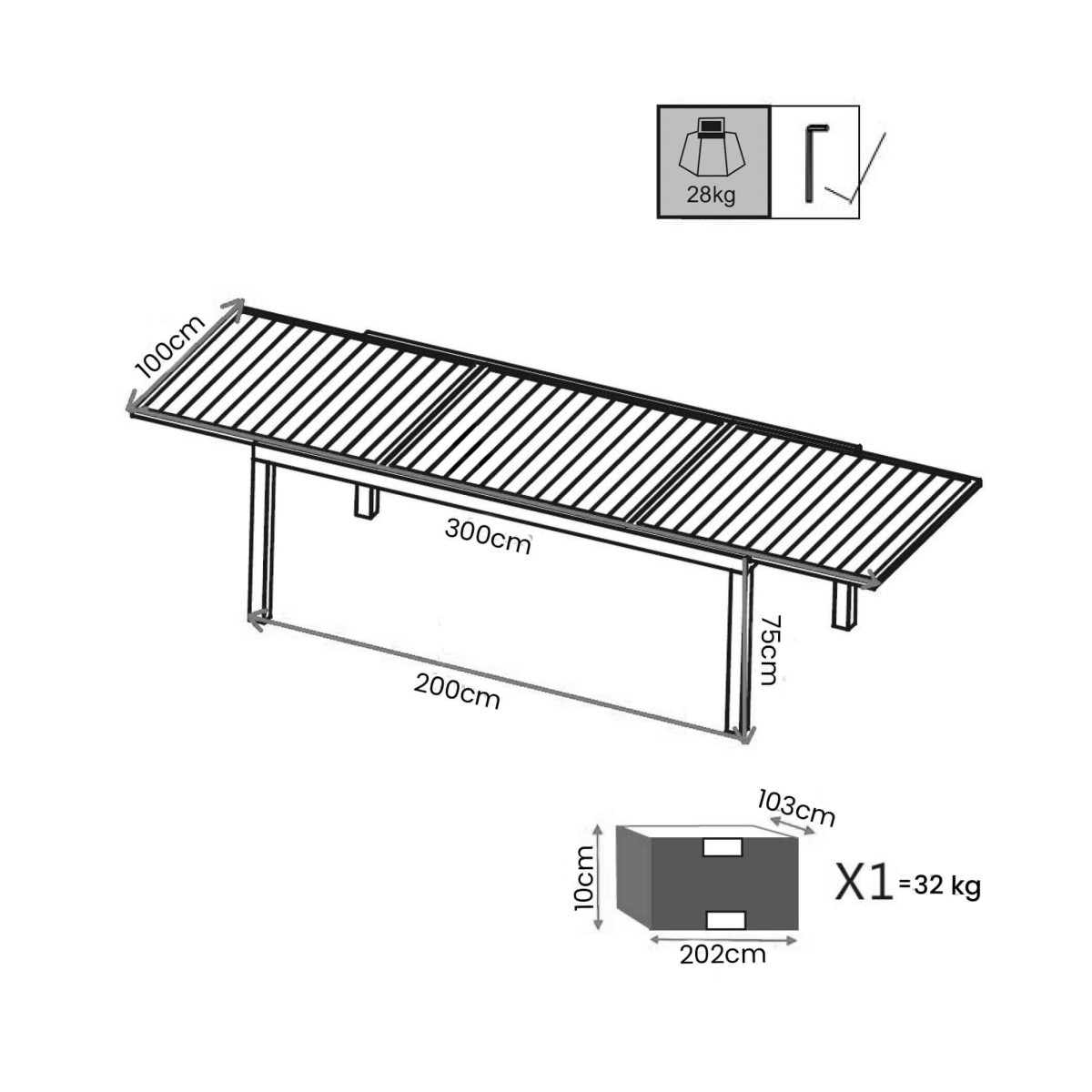 TAVOLO CM cm 200 /300 X 100 x 75 h