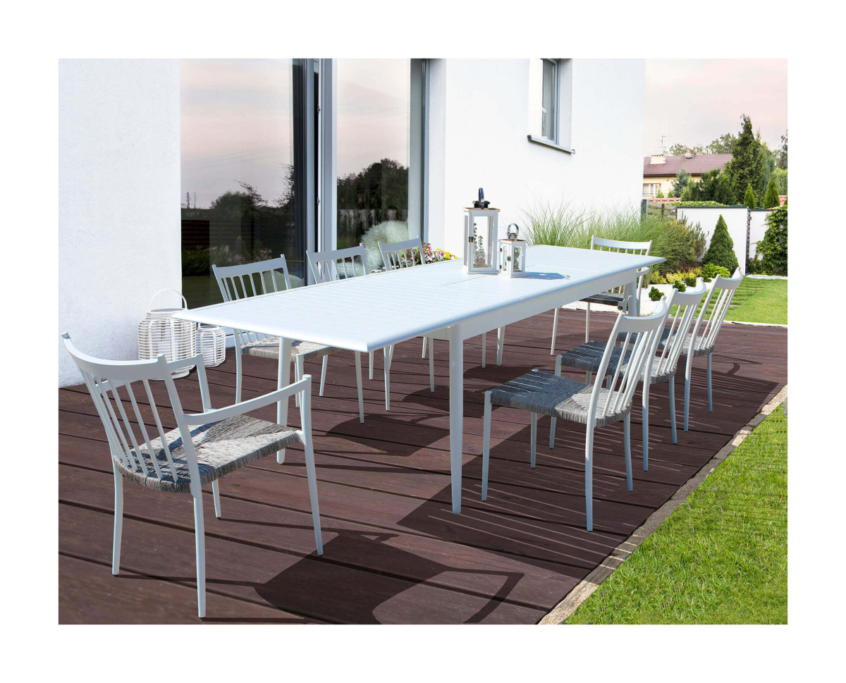 Questo tavolo da giardino allungabile può ospitare comodamente fino a dieci commensali. Prova l'emozione di cenare sotto le stelle.