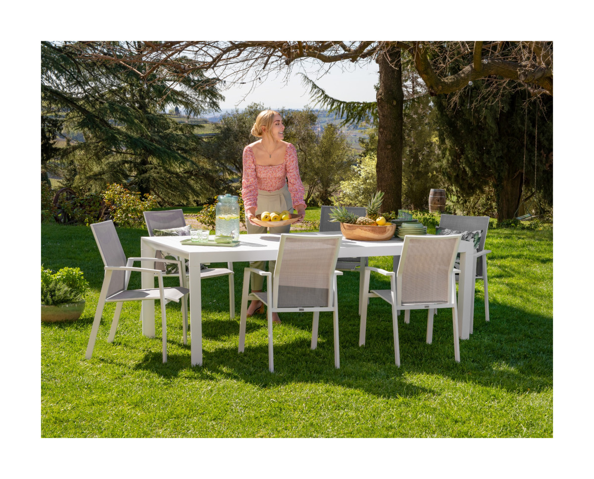 I tavoli da giardino allungabili sono una soluzione pratica e versatile per completare l'arredo dei tuoi spazi outdoor. La leggerezza dell'alluminio rende prodotti come questo tavolo da esterno perfetti per l'uso quotidiano. Facili da pulire non richiedono particolare manutenzione. Inoltre sono resistenti ad usura e agenti atmosferici.