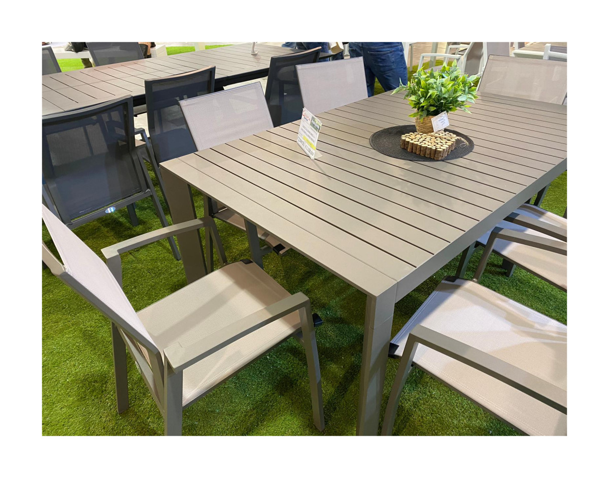 La struttura in alluminio di colore TAUPE rende questo tavolo per esterno molto apprezzato per solidità e design. Un complemento d'arredo che da solo è in grado di migliorare l'arredo dei tuoi spazi outdoor.