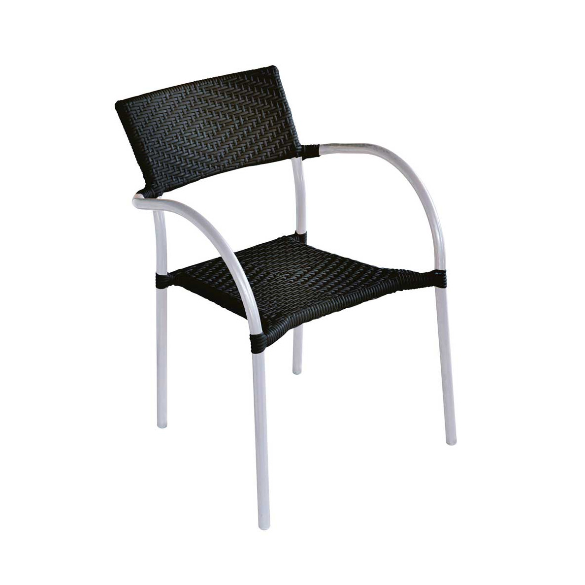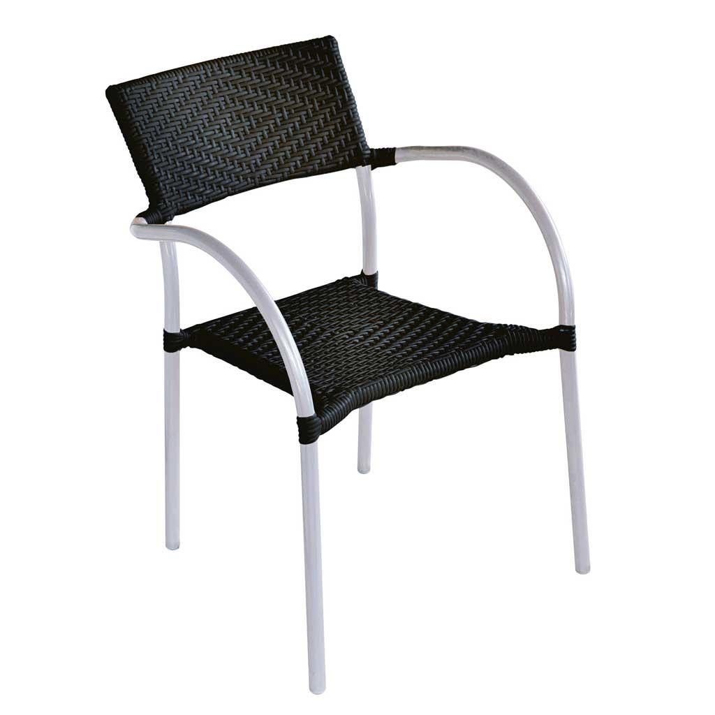 Sedia in alluminio e wicker nero Moia CC 21N della serie Contract, ideale per esercizi pubblici.