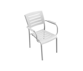 Sedia da esterno con braccioli, moderna e versatile, ideale per arredare spazi esterni.