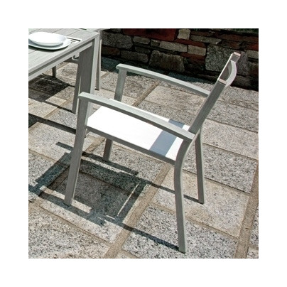 Sedia Portici in Alluminio color Legno Sbiancato e Textilene color Avorio - Impilabile
