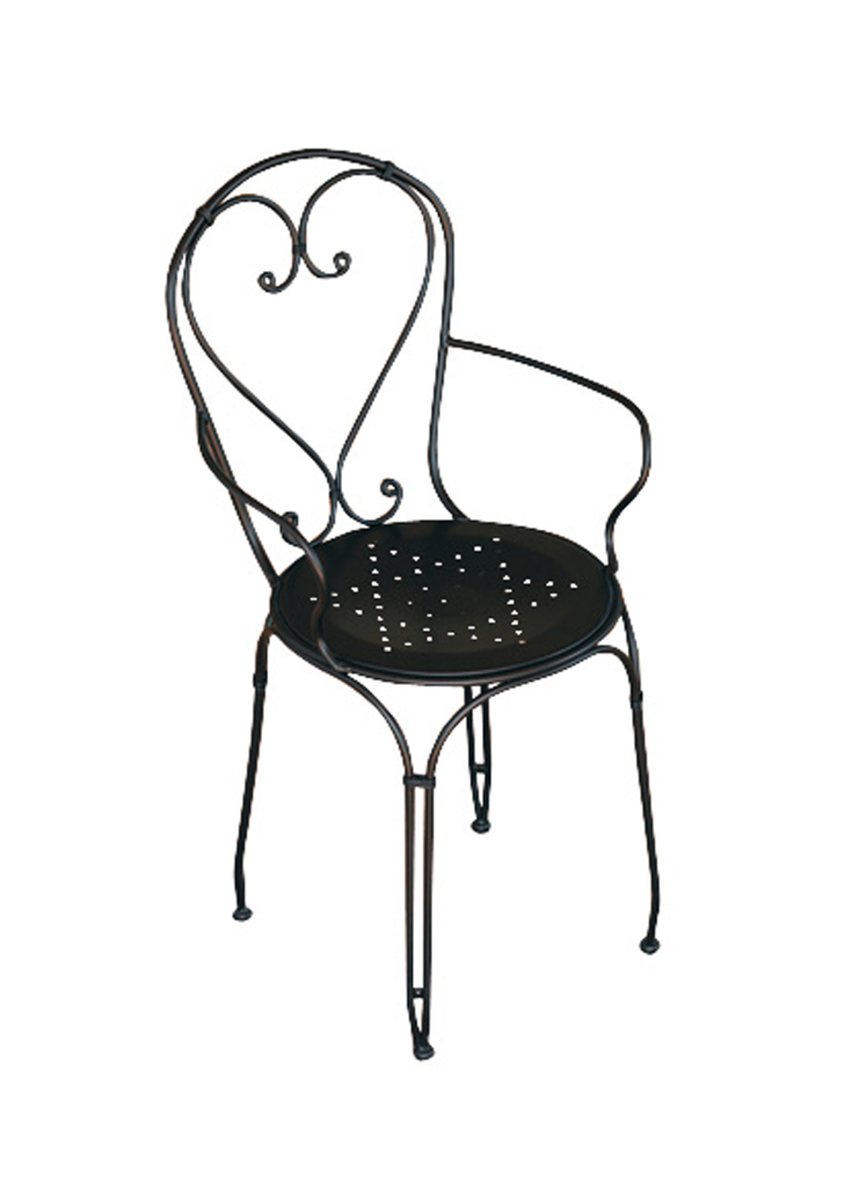 Sedia Stresa in ferro con braccioli, con trattamento antiruggine e impilabile.