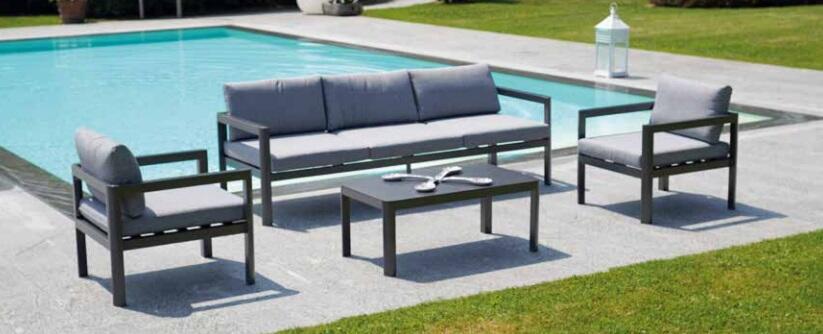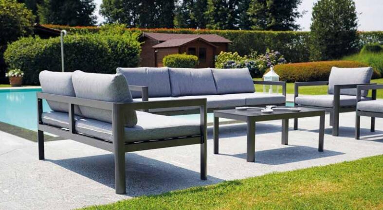 • DIVANO 3 POSTI in alluminio verniciato per esterni di colore grigio antracite.