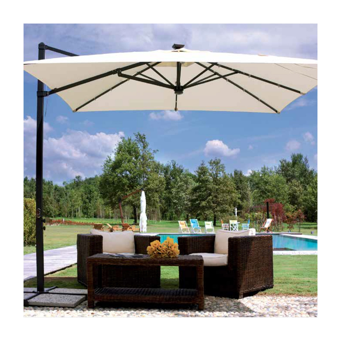 Ombrellone quadrato da esterno telo ecru 300?300 palo laterale alluminio e luci led con pannello solare