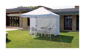 Pieghevole in alluminio con traliccio centrale, struttura 30x30 mm/25x25x1,2 mm, senza rivetti. Gambe telescopiche con anelli salva dita. Poliestere 250 gr resinato con sacca per il trasporto con ruote.