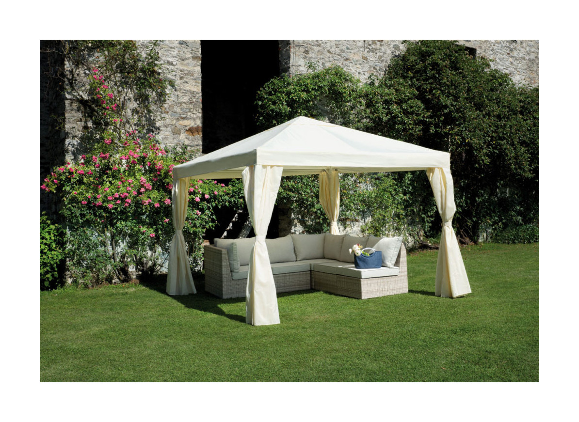 GAZEBO QUADRATO 3×3 mt. in ferro epoxy BIANCO modello con tende laterali GAZ 366