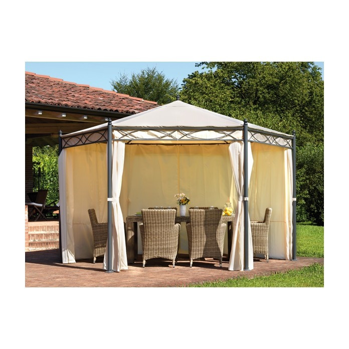 GAZEBO ESAGONALE ? 4 METRI STRUTTURA IN FERRO CON TELO IN POLIESTERE ECRU?