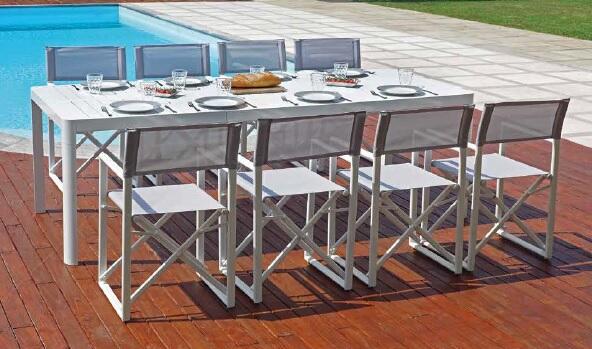 Il set pranzo moderno per giardino in alluminio ti permette di allestire con ottimo gusto il tuo spazio outdoor creando un ambiente elegante e comodo nei mesi estivi e in primavera.