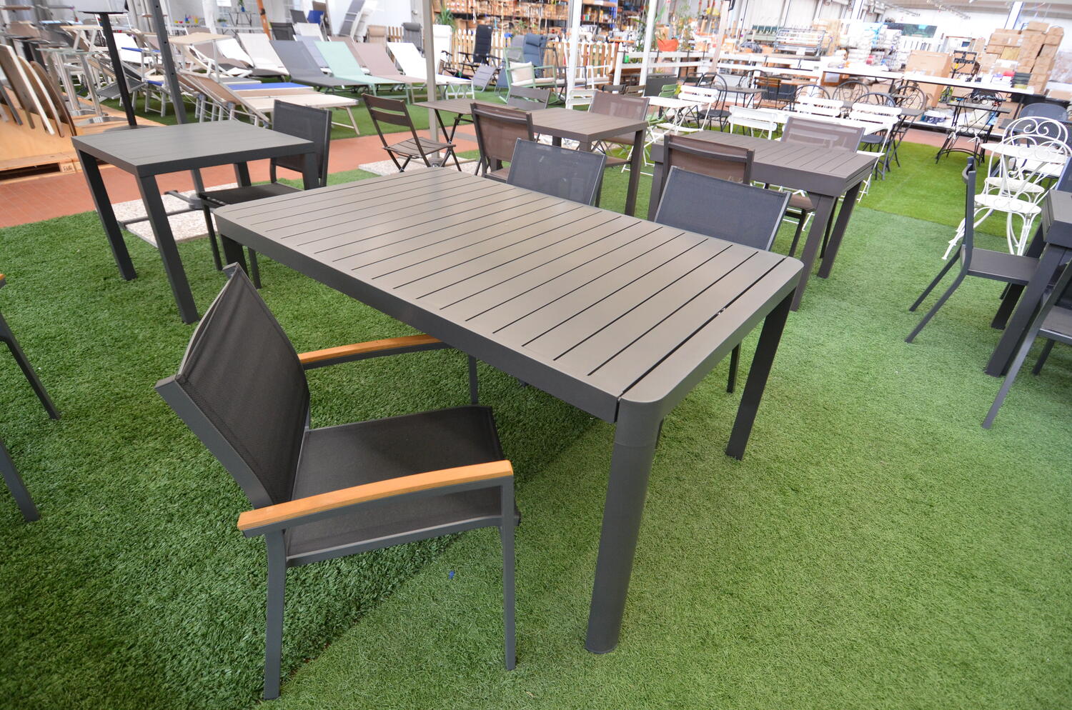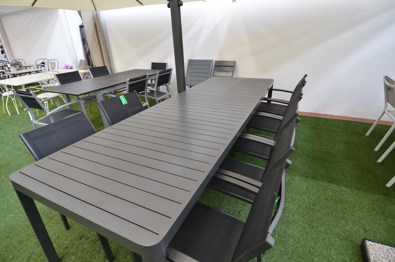 Il tavolo rettangolare allungabile si estende da 180 fino a 240 cm e può ospitare da 4 a 6 persone. L'alluminio verniciato a polvere è leggero e resistente ed è il materiale ideale per le giornate all'aria aperta in compagnia all'ombra di un gazebo o di un ombrellone con palo LATERALE.
