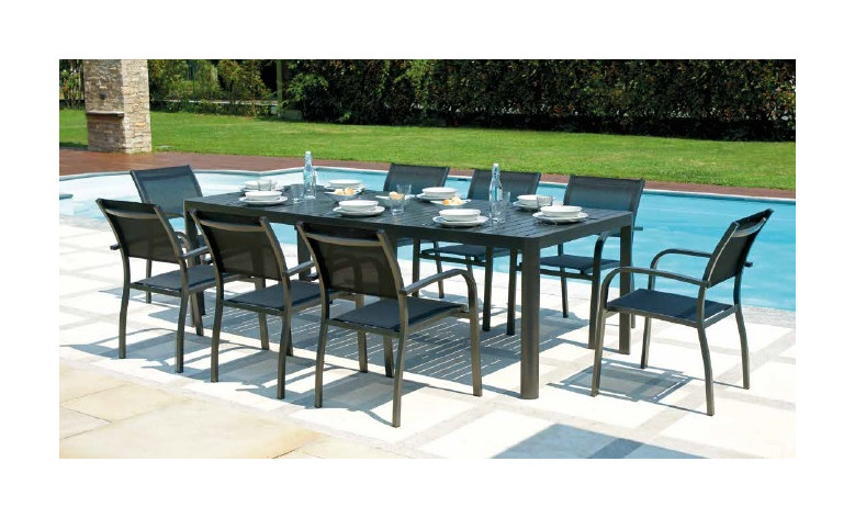 Il set pranzo moderno per giardino in alluminio ti permette di allestire con ottimo gusto il tuo spazio outdoor creando un ambiente elegante e comodo nei mesi estivi e in primavera.