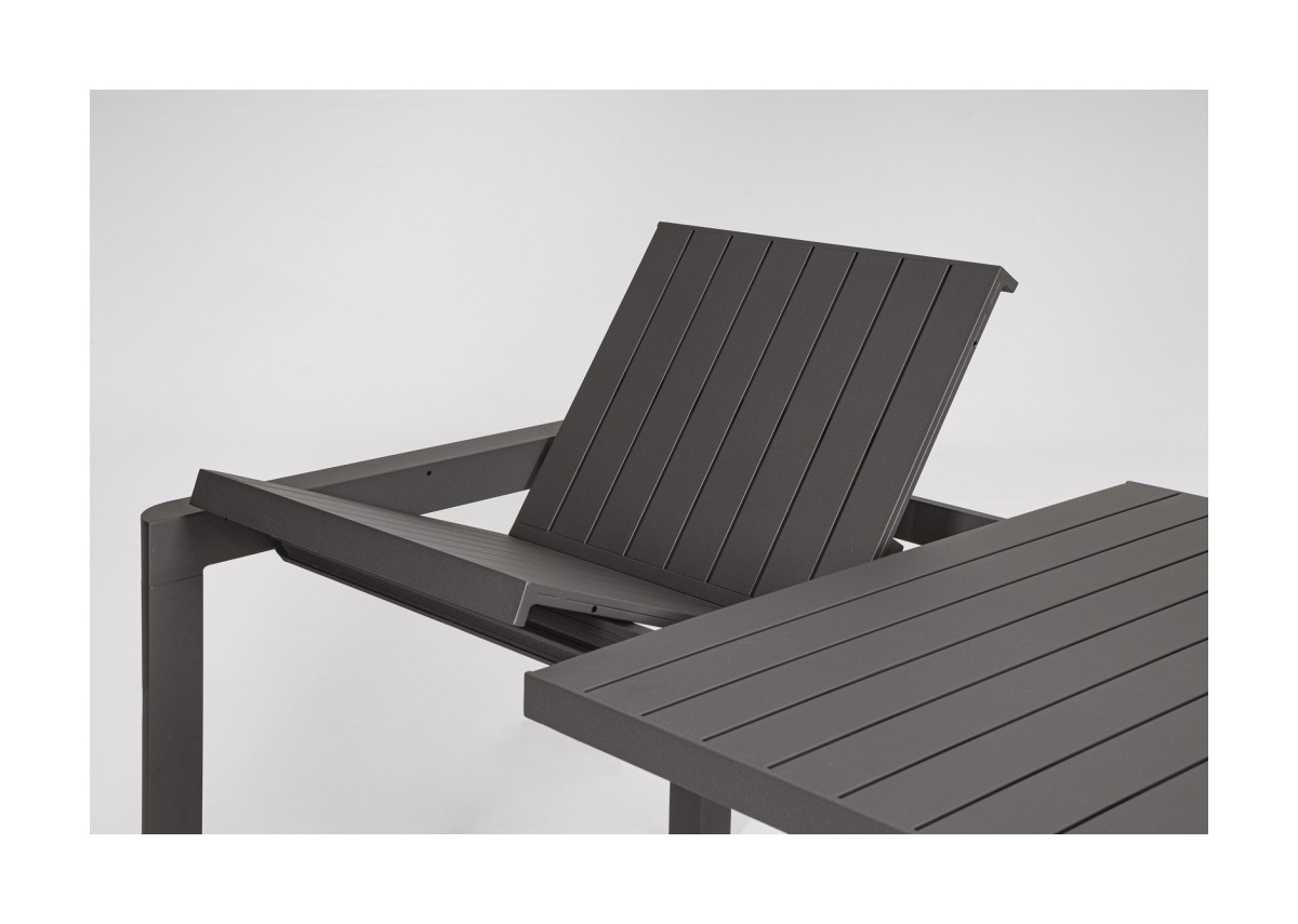 Grazie a volumi equilibrati e forme nette, il tavolo , arreda con moderna eleganza gli ambienti outdoor. La prolunga lo rende un complemento ideale e versatile per tutte le occasioni, formali e informali.