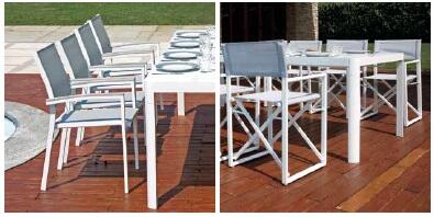 Il set pranzo moderno per giardino in alluminio ti permette di allestire con ottimo gusto il tuo spazio outdoor creando un ambiente elegante e comodo nei mesi estivi e in primavera.