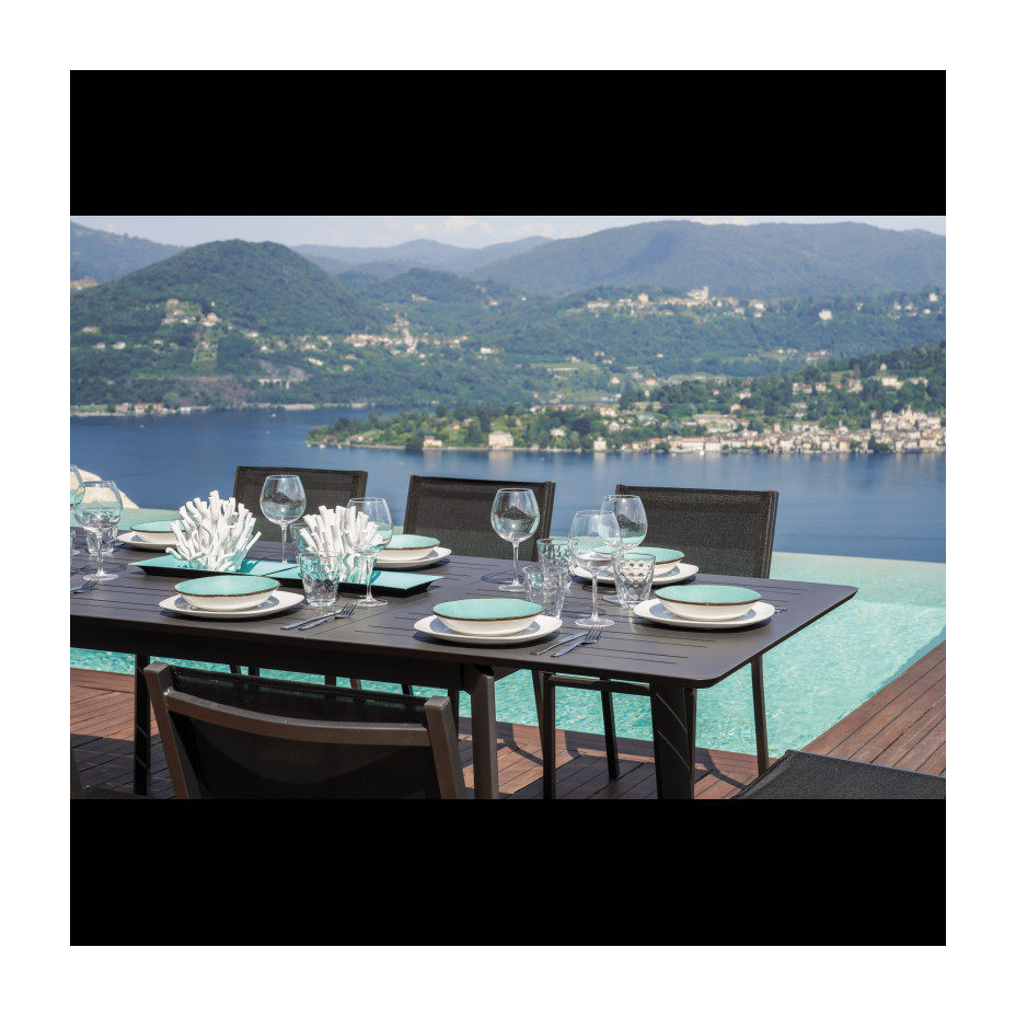 Elegante, pratico e moderno, grazie al sistema allungabile è adatto per ogni tipo d?occasione, anche quelle più numerose. Tramite l'allunga centrale permette di passare da un piano lungo 160 cm a 240 cm per far così posto fino a 8-10 persone. Realizzato in alluminio color antracite, con il suo stile lineare si adatta inoltre ad ogni tipo di outdoor garantendo massima resistenza e versatilità per l'uso esterno. Completalo con un set di sedie dello stesso stile, come la VIAREGGIO o la VOLTERRA con comodi braccioli. Le trovi sul nostro catalogo.
