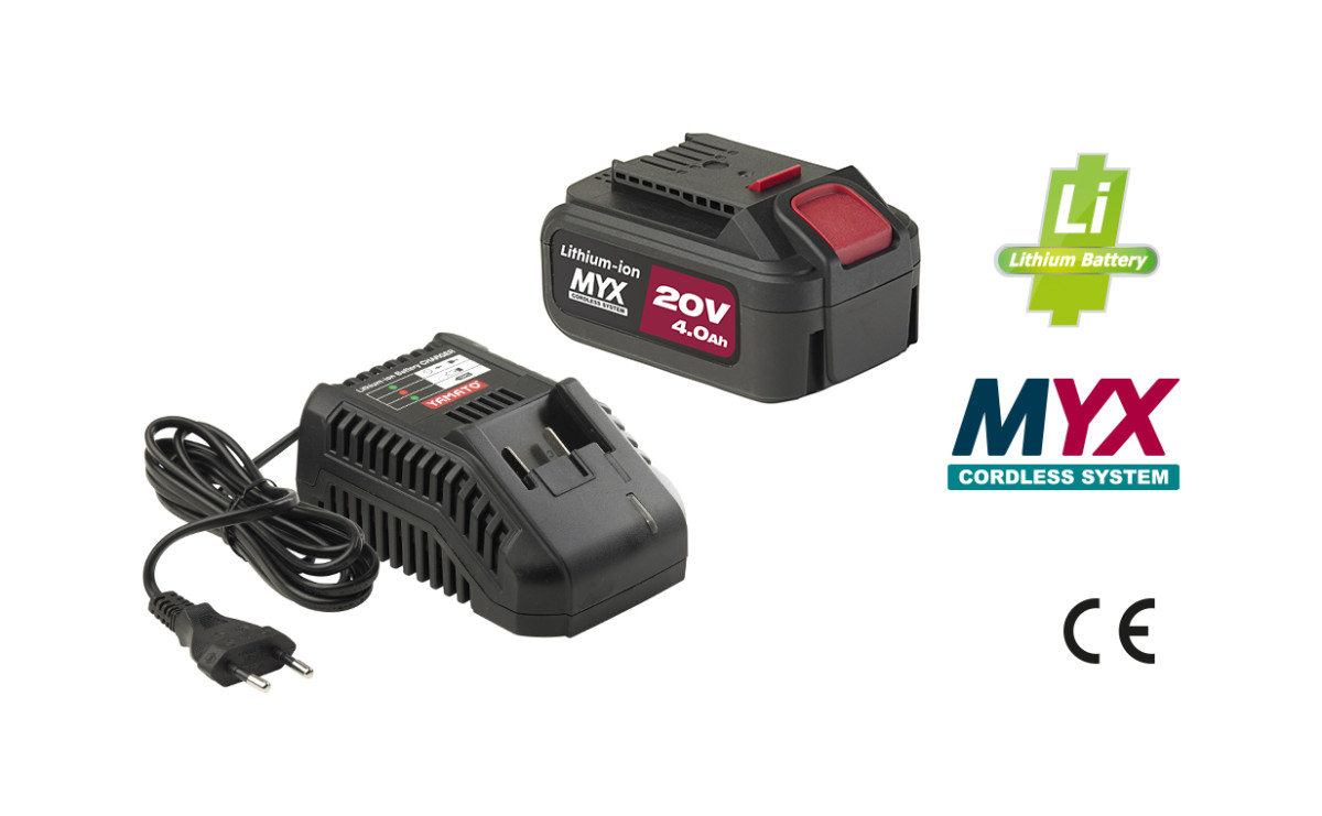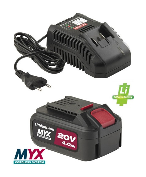kit da 1 batteria al lithio da 20 v 4,0 Ah + caricabatterie universale