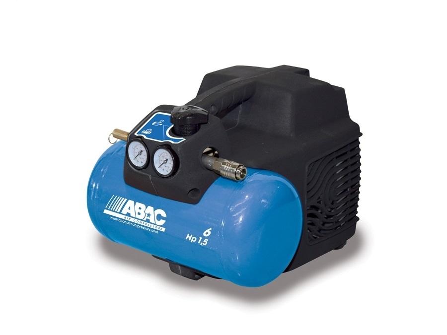 Dispone di un serbatoio di accumulo aria compressa di 6 litri di capienza. Pesa 10 kg e può essere trasportato facilmente grazie alla maniglia superiore ergonomica.