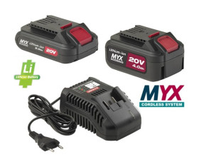 SET 2 BATTERIE MYX 20 VOLT AL LITIO E CARICABATTERIA UNIVERSALE YAMATO CKT2042