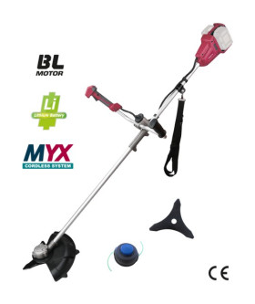 voltaggio max: 40 V (2X20V) velocità taglio: 7.000 rpm larghezza taglio con filo: ? 35 cm larghezza taglio con lama: ? 25 cm filo: ? 2 mm peso: 4,30 kg motore brushless (senza spazzole) doppia impugnatura a manubrio regolabile bobina con filo e lama a tre denti incluse per il funzionamento della macchina sono necessarie 2 batterie da 20V NB batteria e caricabatteria NON INCLUSI