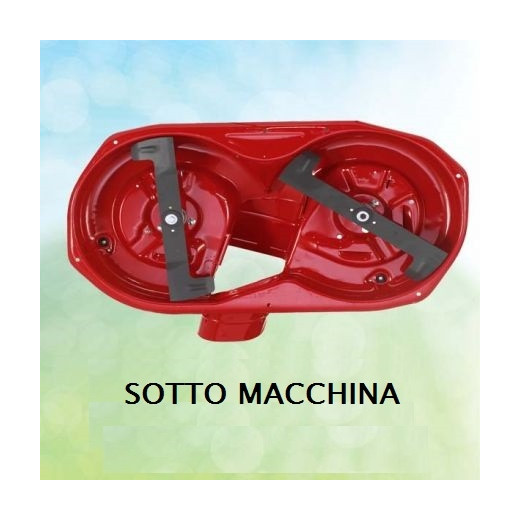 Il piatto del trattorino rasaerba è basculante: si adatta facilmente alle ondulazioni del terreno (purchè non eccessivamente aspre). Inoltre è dotato di 2 ruote anti-scalpo e di raccordo di lavaggio.