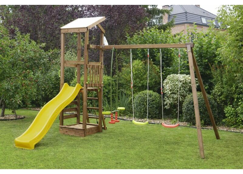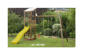 Set composto da: 2 altalene, cavalluccio, torretta con scala di accesso in legno e corda,