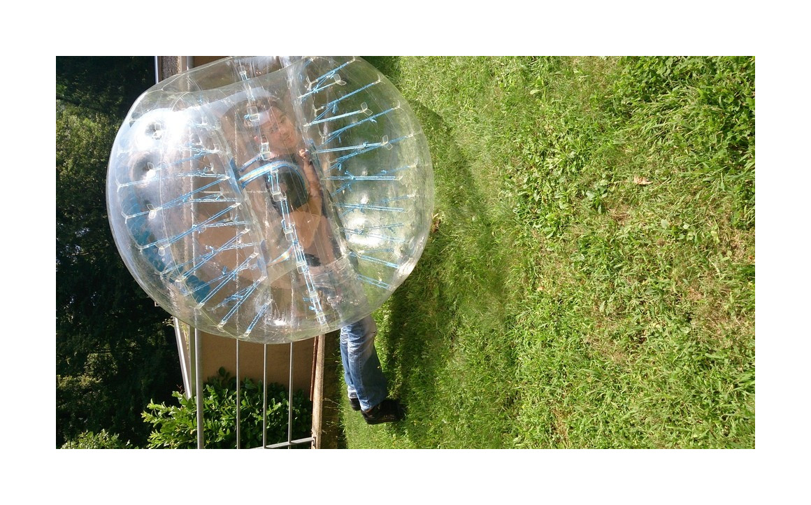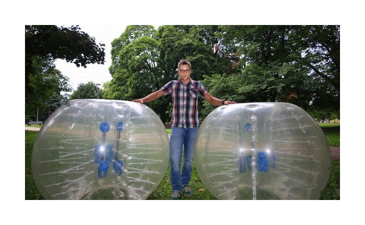 L?idea delle Happy Bumper Ball nasce da uno sport importato dall?America, in cui si gioca a calcio circondati per metà corpo da una sfera ad aria, che protegge da urti e possibili scontri sul campo.