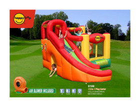 Un super centro giochi completo ed entusiasmante. Grande superficie per saltare, arrampicata, scivolo di grandi dimensioni, tunnel, canestro, vasca per palline, tiro al bersaglio e lancio agli anelli.