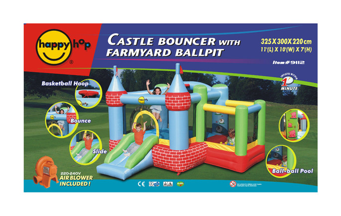 HAPPY AIR FATTORIA Art. 9112 - Castello Gonfiabile Happy Hop con SCIVOLO e VASCA con 50 PALLINE in OMAGGIO