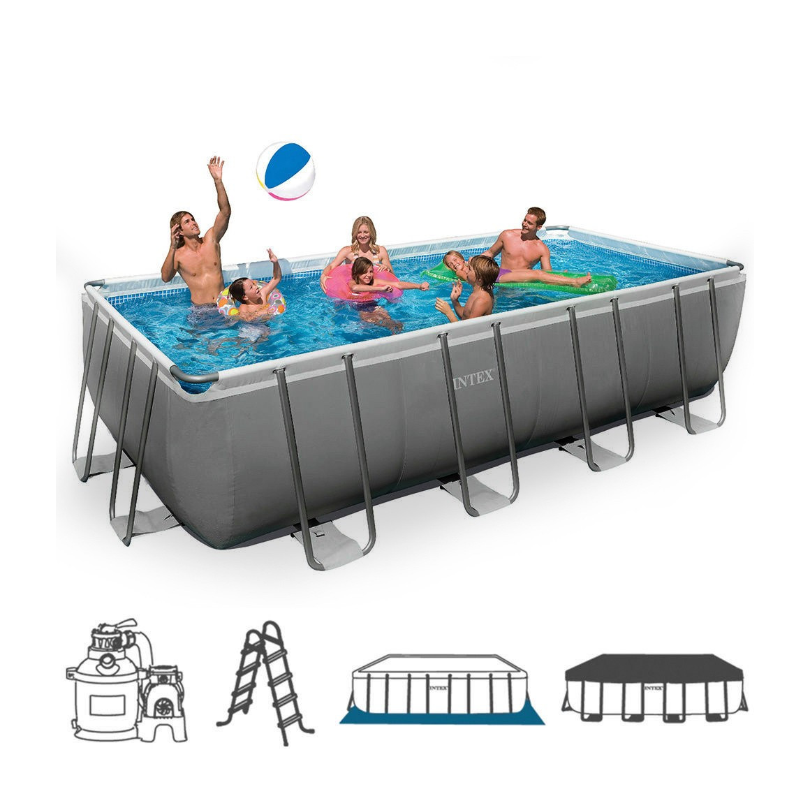 La linea di piscine Intex fuori terra Ultra Frame Rettangolari è facile da assemblare grazie ad un nuovo metodo per cui non servono più clip per collegare le parti metalliche. L?elegante colore grigio del modello Intex accresce il valore di una piscina estremamente solida, flessibile e resistente nel tempo. Ha uno spessore ed una sezione maggiori rispetto i modelli frame tradizionali per aumentare la resistenza alla pressione dell?acqua ed all?utilizzo da parte del consumatore. Tutti gli spigoli sono arrotondati e smussati per la sicurezza dei bambini.