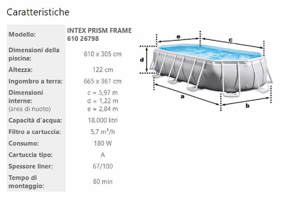 Caratteristiche teniche piscina fuori terra Intex 26798: