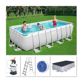 Piscina fuori terra rettangolare Bestway 56671 linea Power Steel con struttura in acciaio galvanizzato per massimizzare la robustezza e la resistenza, assicurando al cliente un prodotto di qualità superiore